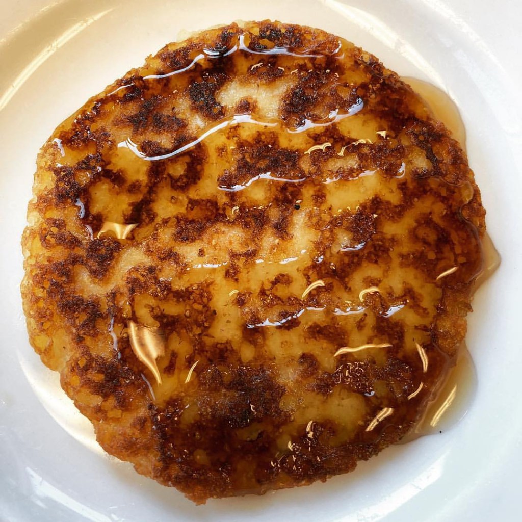Three of our Johnnycakes made with white cornmeal from Kenyon’s Grist Mill